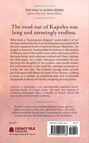 Who knew a "kindergarten dropout" could make it so far? Restless and headstrong, Frances Kakugawa was raised amid the anti-Japanese fervor of wartime Hawai'i. Back then, she longed to leave her hardscrabble hometown in the shadow of Kīlauea, one of the world's most active volcanoes, with its kerosene lamps and outhouses stocked with Sears catalogs for toilet paper. As a child, Kakugawa pretended she was the long-lost daughter of the emperor who would reclaim her and restore her to her royal life-perhaps tomorrow, or maybe the next day. The imperial carriage never arrived, but Kakugawa did follow the path of her dreams, building a career as a teacher, an acclaimed poet and a nationally recognized authority on family caregiving and education. The Hali'a Aloha Series publishes personal essays, memoir, poetry and prose. The series celebrates moments big and small, harnessing the power of short forms to preserve the lived experiences of the storytellers.