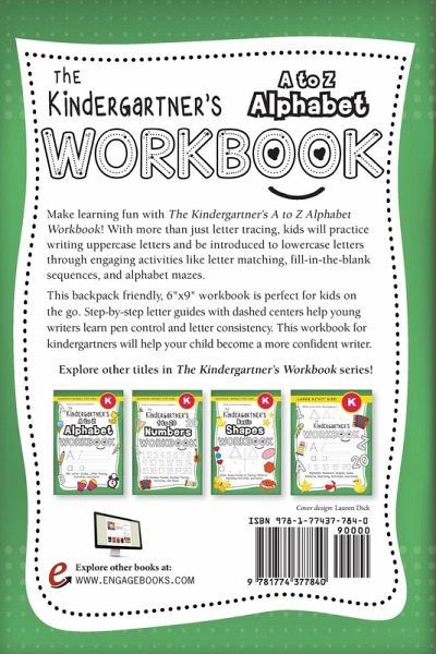 Make learning fun with The Kindergartner's A to Z Alphabet Workbook! With more than just letter tracing, kids will practice writing uppercase letters and be introduced to lowercase letters through engaging activities like letter matching, fill-in-the-blank sequences, and alphabet mazes. This backpack friendly, 6"x9" workbook is perfect for kids on the go. Step-by-step letter guides with dashed centers help young writers learn pen control and letter consistency. This workbook for kindergartners will help your child become a more confident writer.
