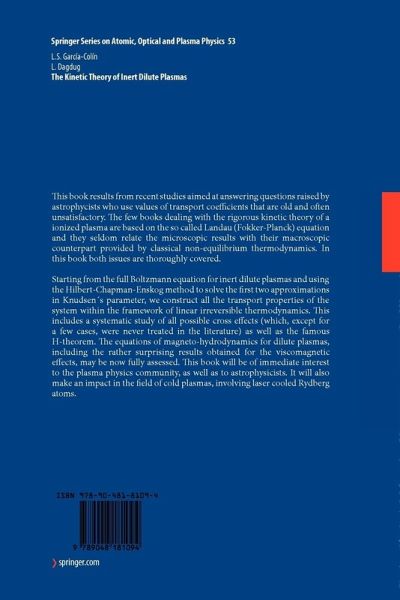 This book results from recent studies aimed at answering questions raised by astrophycists who use values of transport coefficients that are old and often unsatisfactory. The few books dealing with the rigorous kinetic theory of a ionized plasma are based on the so called Landau (Fokker-Planck) equation and they seldom relate the microscopic results with their macroscopic counterpart provided by classical non-equilibrium thermodynamics. In this book both issues are thoroughly covered. Starting from the full Boltzmann equation for inert dilute plasmas and using the Hilbert-Chapman-Enskog method to solve the first two approximations in Knudsen´s parameter, we construct all the transport properties of the system within the framework of linear irreversible thermodynamics. This includes a systematic study of all possible cross effects (which, except for a few cases, were never treated in the literature) as well as the famous H-theorem. The equations of magneto-hydrodynamics for dilute plasmas, including the rather surprising results obtained for the viscomagnetic effects, may be now fully assessed. This book will be of immediate interest to the plasma physics community, as well as to astrophysicists. It is also likely to make an impact in the field of cold plasmas, involving laser cooled Rydberg atoms.