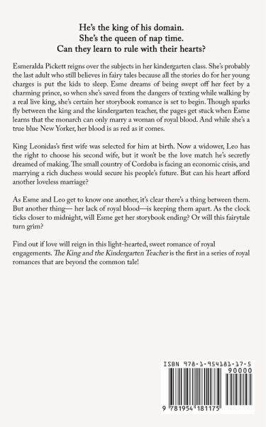 He's the king of his domain. She's the queen of nap time. Can they learn to rule with their hearts? Esmeralda Pickett reigns over the subjects in her kindergarten class. She's probably the last adult who still believes in fairy tales because all the stories do for her young charges is put the kids to sleep. Esme dreams of being swept off her feet by a charming prince, so when she's saved from the dangers of texting while walking by a real live king, she's certain her storybook romance is set to begin. Though sparks fly between the king and the kindergarten teacher, the pages get stuck when Esme learns that the monarch can only marry a woman of royal blood. And while she's a true blue New Yorker, her blood is as red as it comes. King Leonidas's first wife was selected for him at birth. Now a widower, Leo has the right to choose his second wife, but it won't be the love match he's secretly dreamed of making. The small country of Cordoba is facing an economic crisis, and marrying a rich duchess would secure his people's future. But can his heart afford another loveless marriage? As Esme and Leo get to know one another, it's clear there's a thing between them. But another thing- her lack of royal blood-is keeping them apart. As the clock ticks closer to midnight, will Esme get her storybook ending? Or will this fairytale turn grim? Find out if love will reign in this light-hearted, sweet romance of royal engagements. The King and the Kindergarten Teacher is the first in a series of royal romances that are beyond the common tale!