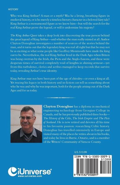 Who was King Arthur? A man or a myth? Was he a living, breathing figure in medieval history, or is he merely a timeless literary character in a beloved fairy tale? King Arthur is a monumental figure as we know him-but will the search for the real King Arthur prove the legend, or will it undermine his majesty? The King Arthur Quest takes a deep look into discovering the true person behind the great legend of King Arthur-and whether the man really existed at all. Author Clayton Donoghue investigates a number of sources of the stories behind the man, and it turns out that the legendary king was real all right but that he may not be as exciting as what some people like Geoffrey Monmouth have made the king out to be. Nevertheless, the real King Arthur lived in the Dark Ages when Briton was being overrun by the Irish, the Picts and the Anglo-Saxons, and these were desperate times of survival completely void of knights in shining armour-yet from this turbulence, clerics and scribes managed to keep records that survive today, revealing Arthur's true identity. King Arthur may not have been part of the age of chivalry-or even a king at all. Yet tracing his legacy in both history and in fiction can tell us something about who he was and why he was important, both for the people arising out of the Dark Ages and for us today.