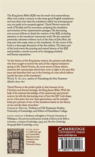 The King James Bible was the result of an extraordinary effort over nearly a century to make many good English translations and turn them into what the translators called 'one principal good one, not justly to be excepted against'. David Norton traces the work of Tyndale and his successors, analysing the translation and revisions of two representative passages. His fascinating new account follows in detail the creation of the KJB, including attention to the translators' manuscript work. He also examines previously unknown evidence such as the diary of John Bois, the only man who made notes on the translation. At the centre of the book is a thorough discussion of the first edition. The latter part of the book traces the printing and textual history of the KJB and provides a concise account of its changing scholarly and literary reputations.