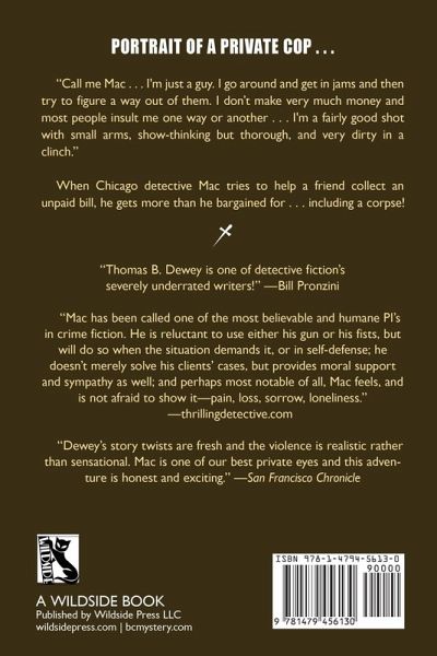 When Mac tries to help a friend collect an unpaid bill, he gets more than he bargained for...including a corpse! #17 in the Mac detective series! "Mac is one of our best private eyes." -- San Francisco Chronicle "Thomas B. Dewey is one of detective fiction's severely underrated writers!" -- Bill Pronzini "Mac has been called one of the most believable and humane PI's in crime fiction. He is reluctant to use either his gun or his fists, but will do so when the situation demands it, or in self-defense; he doesn't merely solve his clients' cases, but provides moral support and sympathy as well; and perhaps most notable of all, Mac feels, and is not afraid to show itópain, loss, sorrow, loneliness." --thrillingdetective.com