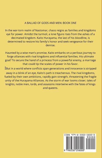 In the war-torn realm of Nastomar, chaos reigns as families and kingdoms vye for power. Amidst the turmoil, a lone figure rises from the ashes of a decimated kingdom. Kaito Hurayama, the last of his bloodline, is determined to restore his family's honor and seek vengeance for their demise. Haunted by a wise man's promise, Kaito embarks on a perilous journey to forge alliances with rival kingdoms and influential families. His ultimate goal? To secure the hand of a princess from a powerful enemy, a marriage that could tip the scales of power in his favor. But in a world where conflicts span generations and innocence is stripped away in a blink of an eye, Kaito's path is treacherous. The rival kingdoms, fueled by their own ambitions, rapidly gain strength, threatening the fragile unity of the Hurayama Alliances. As the storm of war looms closer, tales of knights, noble men, lords, and assassins intertwine with the fates of kings and queens. In this desperate time, alliances will be tested, loyalties shattered, and sacrifices made. From the depths of desolation, rises the true essence of courage and resilience. This is the tale of a young king who seeks to reclaim his birthright and bring stability to a fractured realm. Will he conquer his enemies and fulfill the wise man's promise, or will he succumb to the darkness that plagues Nastomar? "The King of Desolation" is an epic adventure that grips you from the first page and plunges you into a world teetering on the edge of destruction. Prepare to be swept away by the grandeur of battles, the complexities of political intrigue, and the sheer determination of a young king whose destiny holds the fate of nations in its hands. Kaito Hurayama must venture throughout the Realm on the journey for immortality and the be the true king of Nastomar. along the way he meets many faces. some good and some bad.