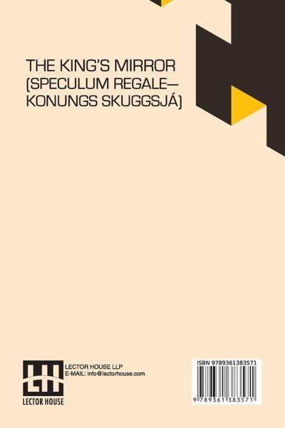 NEW PRINT WITH PROFESSIONAL TYPE-SET IN CONTRAST TO SCANNED PRINTS OFFERED BY OTHERS The King s Mirror (Speculum Regale Konungs Skuggsja): Translated From The Old Norse With Introduction And Notes By Laurence Marcellus Larson Edited By Erik J. Friis This book is a result of an effort made by us towards making a contribution to the preservation and repair of original classic literature. In an attempt to preserve, improve and recreate the original content, we have worked towards: 1. Type-setting & Reformatting: The complete work has been re-designed via professional layout, formatting and type-setting tools to re-create the same edition with rich typography, graphics, high quality images, and table elements, giving our readers the feel of holding a fresh and newly reprinted and/or revised edition, as opposed to other scanned & printed (Optical Character Recognition - OCR) reproductions. 2. Correction of imperfections: As the work was re-created from the scratch, therefore, it was vetted to rectify certain conventional norms with regard to typographical mistakes, hyphenations, punctuations, blurred images, missing content/pages, and/or other related subject matters, upon our consideration. Every attempt was made to rectify the imperfections related to omitted constructs in the original edition via other references. However, a few of such imperfections which could not be rectified due to intentional\unintentional omission of content in the original edition, were inherited and preserved from the original work to maintain the authenticity and construct, relevant to the work.