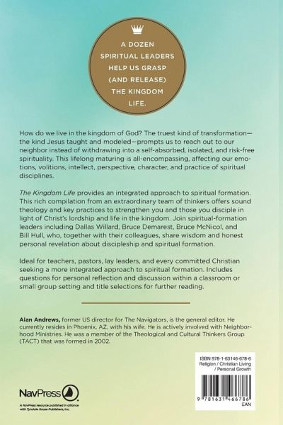 For six years, spiritual formation leaders such as Dallas Willard, Bruce Demarest, and Bill Hull came together with other colleagues to create a collection of wisdom and honest personal revelation in the areas of discipleship and spiritual formation. The result is The Kingdom Life, a book that offers a fresh approach to the spiritual disciplines through a three-pronged focus on transformation, community, and outreach. Connect in a unique way with God and His kingdom by understanding how He sees grace and doctrine, brokenness and obedience, outreach and justice. Includes seven highly practical "process" chapters as well as three theological chapters on the Trinity, the Scriptures, and the Holy Spirit.