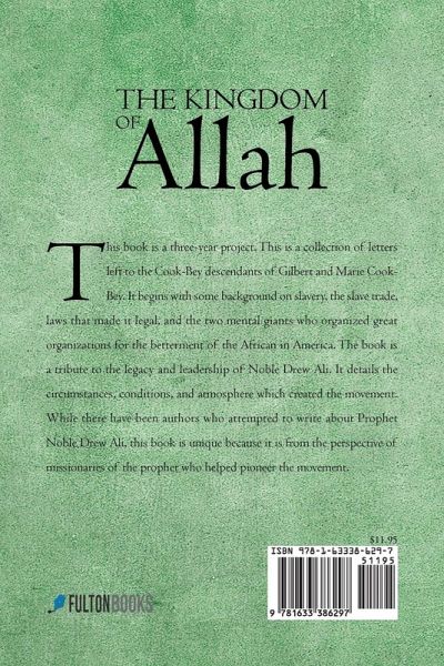 This book is a three-year project. This is a collection of letters left to the Cook-Bey descendants of Gilbert and Marie Cook-Bey. It begins with some background on slavery, the slave trade, laws that made it legal, and the two mental giants who organized great organizations for the betterment of the African in America. The book is a tribute to the legacy and leadership of Noble Drew Ali. It details the circumstances, conditions, and atmosphere which created the movement. While there have been authors who attempted to write about Prophet Noble Drew Ali, this book is unique because it is from the perspective of missionaries of the prophet who helped pioneer the movement.