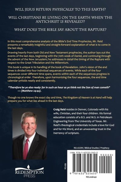 Will Jesus return physically to this earth? Will Christians be living on earth when the antichrist is revealed? What does the Bible say about the rapture? In this most comprehensive analysis of the Bible's End Time Prophecies, Mr.Reid presents a remarkably insightful and straight-forward explanation of what is to come in the last days. Drawing heavily from both Old and New Testament prophecies, the author lays out the events of the last days, beginning with the 70th week of Daniel, and continuing through the advent of the New Jerusalem; addressing in detail the timing of the rapture with respect to the Great Tribulation and the Millennium. This book is unique in its handling of the book of Revelation. John's vision of the end times is divided into four individual sequences of events. While each of the four sequences cover different time spans, events within each of the sequences progress in chronological order. Therefore, upon harmonizing the four sequences, the end time calendar unfolds neatly and consistently. "Therefore be ye also ready: for in such an hour as ye think not the Son of man cometh" (Matthew 24:44). Though no one knows the exact day and time, this book will help prepare you for what lies ahead in the last days.