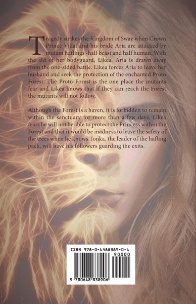 Tragedystrikes the Kingdom of Sway when Crown Prince Vidal and his bride Aria are attacked by mutant haflings -half beast and half human. With the aid of her bodyguard, Likea, Aria is drawn away from the one-sided battle. Likea forces Aria to leave her husband and seek the protection of the enchanted Proto Forest. The Proto Forest is the one place the mutants fear and Likea knows that if they can reach the Forest the mutants will not follow. Although the Forest is a haven, it is forbidden to remain within the sanctuary for more than a few days. Likea fears he will not be able to protect the Princess within the Forest and that it would be madness to leave the safety of the trees when he knows Tonka, the leader of the hafling pack, will have his followers guarding the exits.