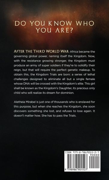 She doesn't believe it. She can't see a hero. But she'll sure fight like one. After the Third World War, Africa became the governing global power, naming itself the Kingdom. Now, with the resistance growing stronger, the Kingdom must produce an army of super soldiers if they're to solidify their reign, but that will require the perfect genetic makeup. To obtain this, the Kingdom Trials are born: a series of lethal challenges designed to eliminate all but a single female whose DNA will be crossed with the Kingdom's elite. This girl shall be known as the Kingdom's Daughter, its precious only child who will realize its dream for dominion. Aletheia Mirabel is just one of thousands who is enslaved for this purpose, but when she reaches the Kingdom, she soon discovers something she lost, and refuses to lose again. It doesn't matter how. She has to pass the Trials. Perfect for enjoyers of 'The Hunger Games' and 'Divergent,' 'The Kingdom's Daughter' delivers fast-paced action and a gripping romance.