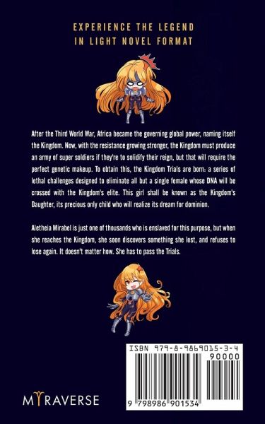 She doesn't believe it. She can't see a hero. But she'll sure fight like one. After the Third World War, Africa became the governing global power, naming itself the Kingdom. Now, with the resistance growing stronger, the Kingdom must produce an army of super soldiers if they're to solidify their reign, but that will require the perfect genetic makeup. To obtain this, the Kingdom Trials are born: a series of lethal challenges designed to eliminate all but a single female whose DNA will be crossed with the Kingdom's elite. This girl shall be known as the Kingdom's Daughter, its precious only child who will realize its dream for dominion. Aletheia Mirabel is just one of thousands who is enslaved for this purpose, but when she reaches the Kingdom, she soon discovers something she lost, and refuses to lose again. It doesn't matter how. She has to pass the Trials. Perfect for enjoyers of 'The Hunger Games' and 'Divergent,' 'The Kingdom's Daughter' delivers fast-paced action and a gripping romance.