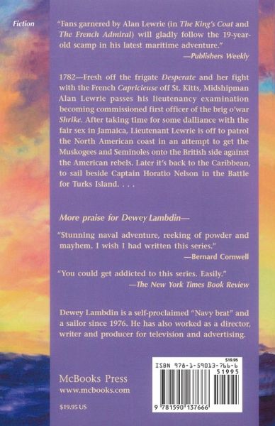 1782. Fresh off the frigate Desperate and her fight with the French Capricieuse off St. Kitts, Midshipman Alan Lewrie passes his lieutenancy examination, becoming commissioned first officer of the brig o’war Shrike. After taking time for some dalliance with the fair sex in Jamaica, Lieutenant Lewrie is off to patrol the North American coast in an attempt to get the Muskogees and Seminoles onto the British side against the American rebels. Later it’s back to the Caribbean, to sail beside Captain Horatio Nelson in the Battle for Tusks Island . . .