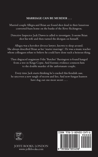 MARRIAGE CAN BE MURDER . . . Married couple Allegra and Brian are found shot dead in their luxurious converted-barn home on the banks of the River Richington. Detective Inspector Jack Dawes is called to investigate. It seems Brian shot his wife and then turned the shotgun on himself. Allegra was a hot-shot divorce lawyer, known to sleep around. She always described Brian as her 'starter marriage'. He was a music teacher whose colleagues refuse to believe he could have done such a heinous thing. Then disgraced magistrate Felix 'Butcher' Barrington is found hanged from a tree in Kings Copse. And forensic evidence connects him to the double murder of the unfortunate couple. Every time Jack starts thinking he's cracked this fiendish case, he uncovers a new tangle of secrets and lies. And now fungus hunters have dug out one more secret . . .