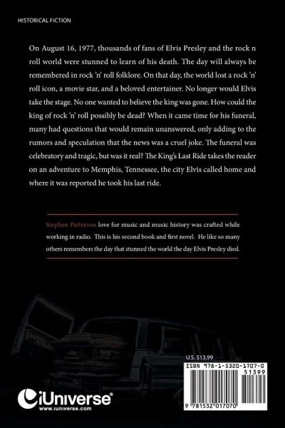 On August 16, 1977, thousands of fans of Elvis Presley and the rock n roll world were stunned to learn of his death. The day will always be remembered in rock ’n’ roll folklore. On that day, the world lost a rock ’n’ roll icon, a movie star, and a beloved entertainer. No longer would Elvis take the stage. No one wanted to believe the king was gone. How could the king of rock ’n’ roll possibly be dead? When it came time for his funeral, many had questions that would remain unanswered, only adding to the rumors and speculation that the news was a cruel joke. The funeral was celebratory and tragic, but was it real? The King’s Last Ride takes the reader on an adventure to Memphis, Tennessee, the city Elvis called home and where it was reported he took his last ride.