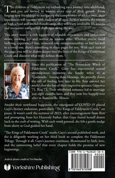 Since the publication of "The Persnickety Witch of Fiddyment Creek," Gaye has experienced several serendipitous moments she fondly refers to as 'Godwinks.' Among these blessings, she proudly shares the tale of finding love later in life. Ron entered her world after the loss of their respective spouses; Gaye was 71, Ron 73. Their whirlwind romance led to marriage just eight months later, and they now live happily ever after in Romeoville, Illinois.Amidst their newfound happiness, the emergence of COVID-19 placed Gaye's literary endeavors, particularly "The Kings of Fiddyment Creek," on pause. It wasn't until the summer of 2023, after encouragement from Ron and prompting from her Heavenly Father, that Gaye found herself drawn back to the craft of writing. With each word penned, she felt a gentle nudge from above as God guided her hand."The Kings of Fiddyment Creek" marks Gaye's second published work, and she is diligently working on her third book to complete the Fiddyment Trilogy. Through it all, Gaye's journey continues, illuminated by faith, love, and the unwavering belief that every chapter holds the promise of new beginnings.