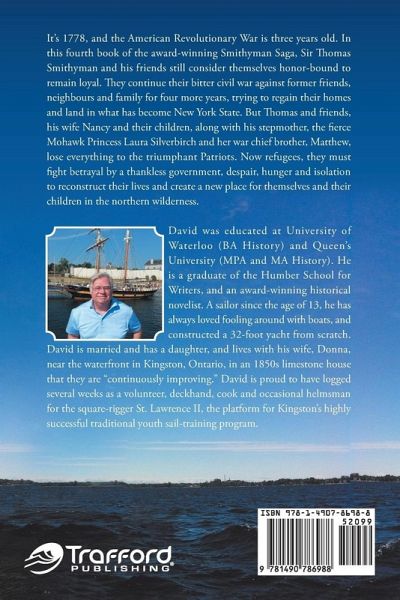 Its 1778, and the American Revolutionary War is three years old. In this fourth book of the award-winning Smithyman Saga, Sir Thomas Smithyman and his friends still consider themselves honor-bound to remain loyal. They continue their bitter civil war against former friends, neighbours and family for four more years, trying to regain their homes and land in what has become New York State. But Thomas and friends, his wife Nancy and their children, along with his stepmother, the fierce Mohawk Princess Laura Silverbirch and her war chief brother, Matthew, lose everything to the triumphant Patriots. Now refugees, they must fight betrayal by a thankless government, despair, hunger and isolation to reconstruct their lives and create a new place for themselves and their children in the northern wilderness.