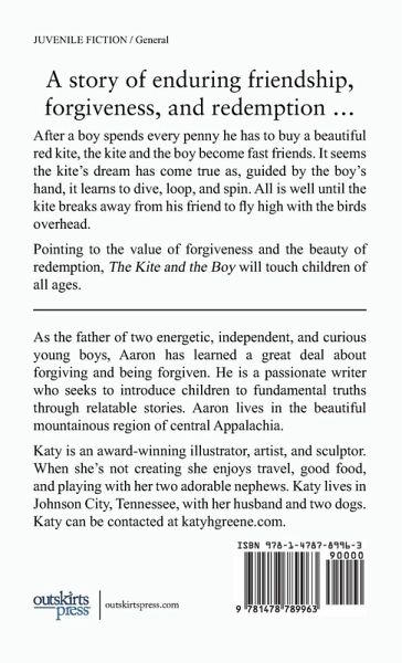 A story of enduring friendship, forgiveness, and redemption ... After a boy spends every penny he has to buy a beautiful red kite, the kite and the boy become fast friends. It seems the kite's dream has come true as, guided by the boy's hand, it learns to dive, loop, and spin. All is well until the kite breaks away from his friend to fly high with the birds overhead. Pointing to the value of forgiveness and the beauty of redemption, The Kite and the Boy will touch children of all ages.
