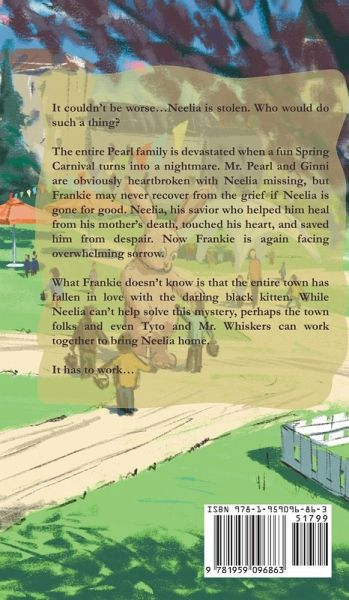 It couldn't be worse...Neelia is stolen. Who would do such a thing? The entire Pearl family is devastated when a fun Spring Carnival turns into a nightmare. Mr. Pearl and Ginni are obviously heartbroken with Neelia missing, but Frankie may never recover from the grief if Neelia is gone for good. Neelia, his savior who helped him heal from his mother's death, touched his heart, and saved him from despair. Now Frankie is again facing overwhelming sorrow. What Frankie doesn't know is that the entire town has fallen in love with the darling black kitten. While Neelia can't help solve this mystery, perhaps the town folks and even Tyto and Mr. Whiskers can work together to bring Neelia home. It has to work...