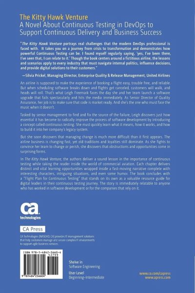 In The Kitty Hawk Venture, the authors deliver a sound lesson in the importance of continuous testing while taking the reader inside the world of commercial aviation. Each chapter delivers distinct and vital learning opportunities wrapped inside a fast-moving narrative complete with interesting characters, intriguing situations, and even some humor. The book concludes with a "Flight Plan for Continuous Testing" that stands on its own as a valuable resource guide for digital leaders in their continuous testing journey. The story is immediately relatable to anyone who has worked in software development or for the companies that rely on it.