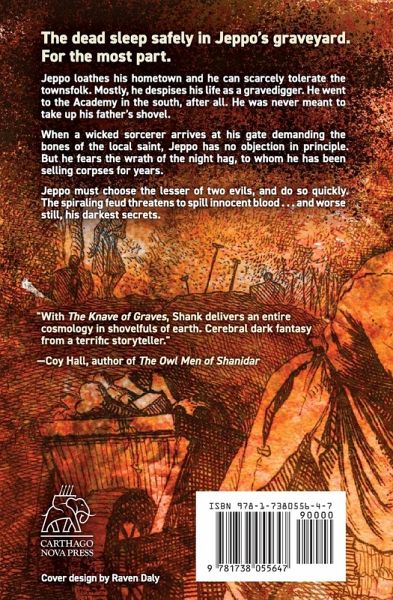 Jeppo loathes his hometown and he can scarcely tolerate the townsfolk. Mostly, he despises his life as a gravedigger. He went to the Academy in the south, after all. He was never meant to take up his father's shovel. When a wicked sorcerer arrives at his gate demanding the bones of the local saint, Jeppo has no objection in principle. But he fears the wrath of the night hag, to whom he has been selling corpses for years. Jeppo must choose the lesser of two evils, and do so quickly. The spiraling feud threatens to spill innocent blood ... and worse still, his darkest secrets.