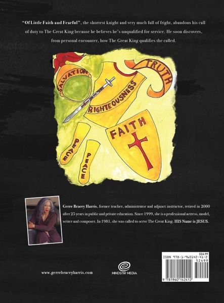 "Of Little Faith and Fearful", the shortest knight and very much full of fright, abandons his call of duty to The Great King because he believes he's unqualified for service. He soon discovers, from personal encounter, how The Great King qualifies the called. Gerre Bracey Harris, former teacher, administrator and adjunct instructor, retired in 2000 after 25 years in public and private education. Since 1999, Gerre is a professional actress, model writer and composer. In 1981, she was saved to serve The Great King. HIS Name is JESUS.