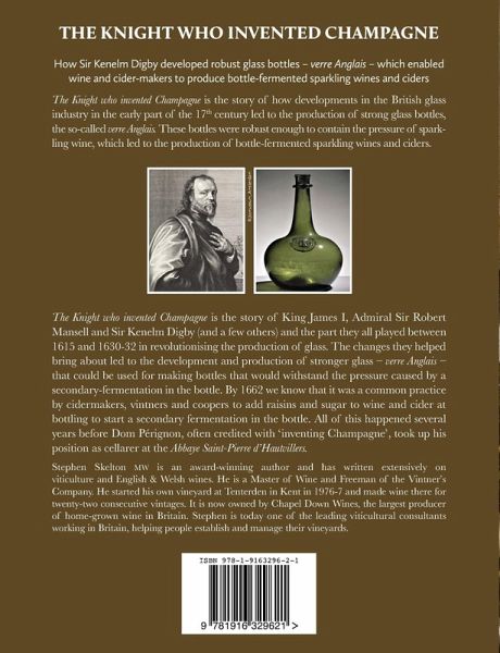 The Knight Who Invented Champagne is the story of how developments in the British glass industry in the early part of the 17th century led to the production by Sir Kenelm Digby of strong glass bottles, the so-called verre Anglais. These 'shaft and globe' bottles, strong enough to contain the pressure of a second fermentation, led to the production of bottle-fermented sparkling wines and ciders.