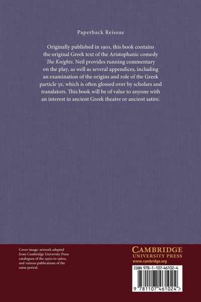 Originally published in 1901, this book contains the original Greek text of the Aristophanic comedy The Knights. Neil provides running commentary on the play, as well as several appendices, including an examination of the origins and role of the Greek particle ¿¿, which is often glossed over by scholars and translators. This book will be of value to anyone with an interest in ancient Greek theatre or ancient satire.