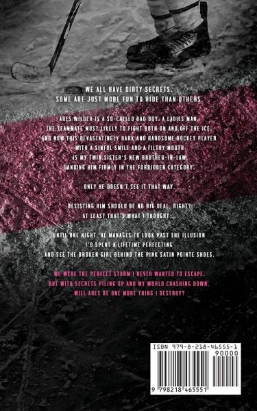 From USA Today and Amazon Bestselling Author Bella Matthews comes a hot new hockey romance between a broken ballerina and the forbidden bad boy who saves her. We all have dirty secrets. Some are just more fun to hide than others. Ares Wilder is a so-called bad boy. A ladies man. The teammate most likely to fight both on and off the ice. And now this devastatingly dark and handsome hockey player with a sinful smile and a filthy mouth is my twin sister's new brother-in-law, landing him firmly in the forbidden category. Only he doesn't see it that way. Resisting him should be no big deal, right? At least that's what I thought... Until one night, he manages to look past the illusion I'd spent a lifetime perfecting and see the broken girl behind the pink satin pointe shoes. We were the perfect storm I never wanted to escape. But with secrets piling up and my world crashing down, will Ares be one more thing I destroy?