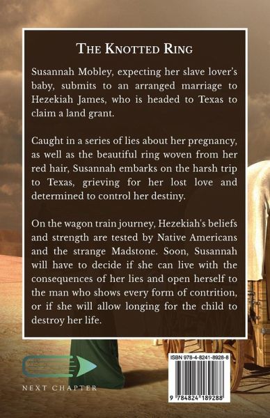 Susannah Mobley, expecting her slave lover's baby, submits to an arranged marriage to Hezekiah James, who is headed to Texas to claim a land grant. Caught in a series of lies about her pregnancy, as well as the beautiful ring woven from her red hair, Susannah embarks on the harsh trip to Texas, grieving for her lost love and determined to control her destiny. On the wagon train journey, Hezekiah's beliefs and strength are tested by Native Americans and the strange Madstone. Soon, Susannah will have to decide if she can live with the consequences of her lies and open herself to the man who shows every form of contrition, or if she will allow longing for the child to destroy her life. "Readers will be drawn in by McILvain's characters, who are richly developed with powerful voices. The tension crafted between Susannah's past and present is palpable throughout, and McILvain skillfully depicts her warring emotions" -BookLife Review-