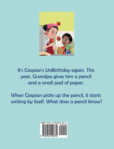 This Pencil Writes by itself. What Does a Pencil Know? It's Caspian's UnBirthday again. This year, Grandpa gives him a pencil and a small pad of paper. When Caspian picks up the pencil, it writes the word APPLE. What does a pencil know? Grandpa says "It's a STAR adventure." But there are no apples in the house. Caspian rescues a runaway walker and returns it to the woman whose leg is in a cast. She gives him an orange. He trades the orange for two bananas. He trades the bananas for a worm. Eventually, he gets apples. The pencil tells him to take them to Miss Susie. What else does the pencil know? Follow Caspian as he follows the clues.