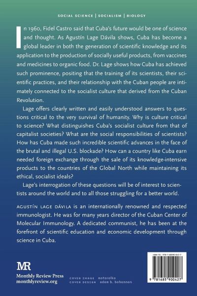 Examines Cuba's approach to scientific research, and distinguishes it from that of capitalist societies "Cuba's future must, by necessity, be a future of scientists," Fidel Castro proclaimed in 1960. As Agustín Lage Dávila shows in this pathbreaking book, Cuba has in fact become a global leader in both the generation and application of scientific knowledge-as demonstrated by its ubiquitous production of socially useful products, from vaccines and medicines, to organic food. Speaking from his position as a noted Cuban immunologist, Dr. Lage shows how Cuba achieved such prominence, positing that the training of its scientists, their scientific practices, and their relationships with the Cuban people are intimately connected to the socialist culture that derived from the Cuban Revolution. Lage offers clearly written and easily understood answers to questions critical to the very survival of humanity. Why is culture critical to science? What distinguishes Cuba's socialist culture from that of capitalist societies? What are the social responsibilities of scientists? How has Cuba made such incredible scientific advances in the face of the brutal and illegal U.S. blockade? How can a country like Cuba earn needed foreign exchange through the sale of its knowledge-intensive products to countries in the Global North while maintaining its ethical, socialist ideals? Lage's interrogation of these questions will be of interest to scientists and economic planners around the world, to all those struggling for a better world-and, no doubt, even to those corporations competing with Cuba in global markets.