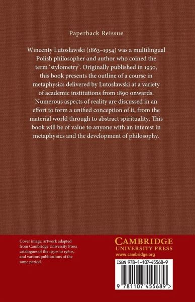 Wincenty Lutos¿awski (1863-1954) was a multilingual Polish philosopher and author who coined the term 'stylometry'. Originally published in 1930, this book presents the outline of a course in metaphysics delivered by Lutos¿awski at a variety of academic institutions from 1890 onwards. Numerous aspects of reality are discussed in an effort to form a unified conception of it, from the material world through to abstract spirituality. This book will be of value to anyone with an interest in metaphysics and the development of philosophy.
