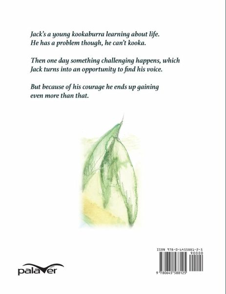 An illustrated book for children of all ages about Jack, a young kookaburra living with his family amongst other birds and animals in an Australian bushland setting. Jack is learning about life. He has a problem though, he can't call as a kookaburra is supposed to do: he can't kooka. Then, one day a challenging incident involving a goanna happens which Jack turns into an opportunity to find his voice and a new friend. Because of his courage he ends up growing in wisdom, generosity, and experience.