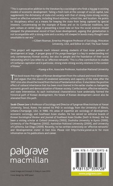 "This is a provocative addition to the literature, by a sociologist, who finds a big gap in existing models of economic development. Taking a fresh look at the concept of social capital, Lew supplements the dichotomy of state-civil society with that of strong state-strong society, based on affective networks, including blood relations, school ties, and localism. He points to 'disciplinary ethos' as a means for keeping the state from being captured by special interests. Concentrating on the example of Korea and on its Confucian traditions, Lew puts culture at center stage in presenting a novel take on how the social sciences should interpret the phenomenal record of East Asian development, arguing that globalization is not incompatible with a strong state and a society still steeped in bonds many thought were unsuitable to our era." - Gilbert Rozman, Emeritus Musgrave Professor of Sociology, Princeton University, USA, and Editor-in-chief, The Asan Forum