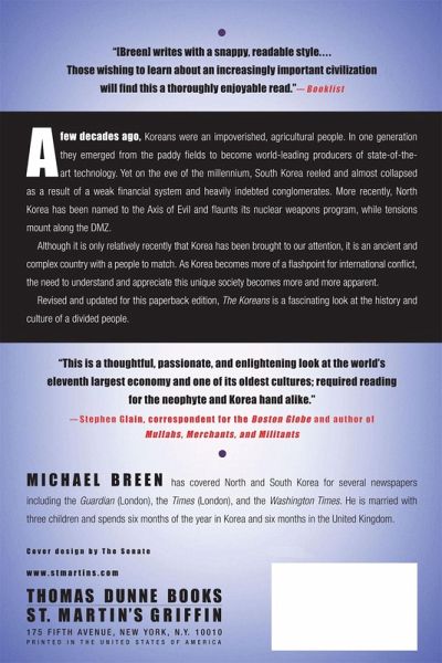 The rise of South Korea is one of the most unexpected and inspirational developments of the latter part of our century. A few decades ago, the Koreans were an impoverished, agricultural people. In one generation they came out of the fields and into Silicon Valley. In 1997, this powerhouse of a nation reeled and almost collapsed as a result of a weak financial system and heavily indebted conglomerates. The world is now watching to see whether the Koreans will be able to reform and continue their stunning growth. Although Korea has only recently found itself a part of the global stage, it is a country with a rich and complex past. Early history shows that Koreans had a huge influence on ancient Japan, and their historic achievements include being the first culture to use metal movable type for printing books. However, much of their history is less positive; it is marred with political violence, poverty, and war--aspects that would sooner be forgotten by the Koreans, who are trying to focus on their promising future. The fact that Korean history has eluded much of the world is unfortunate, but as Korea becomes more of a global player, understanding and appreciation for this unique nation has become indispensable. In The Koreans, Michael Breen provides an in-depth portrait of the country and its people. An early overview of the nature and values of the Korean people provides the background for a more detailed examination of the complex history of the country, in particular its division into the Communist north and pro-Western south. In this absorbing and enlightening account of the Koreans, Michael Breen provides compelling insight into the history and character of this fascinating nation.