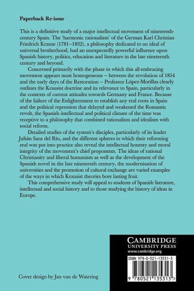 A definitive study of a major intellectual movement of nineteenth-century Spain - the 'harmonic rationalism' of Karl Christian Friedrich Krause (1781 1832).