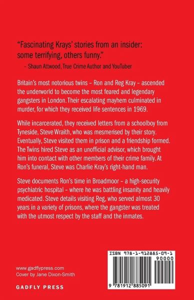 Britain's most notorious twins - Ron and Reg Kray - ascended the underworld to become the most feared and legendary gangsters in London. Their escalating mayhem culminated in murder, for which they received life sentences in 1969. While incarcerated, they received letters from a schoolboy from Tyneside, Steve Wraith, who was mesmerised by their story. Eventually, Steve visited them in prison and a friendship formed. The Twins hired Steve as an unofficial advisor, which brought him into contact with other members of their crime family. At Ron's funeral, Steve was Charlie Kray's right-hand man. Steve documents Ron's time in Broadmoor - a high-security psychiatric hospital - where he was battling insanity and heavily medicated. Steve details visiting Reg, who served almost 30 years in a variety of prisons, where the gangster was treated with the utmost respect by the staff and the inmates.
