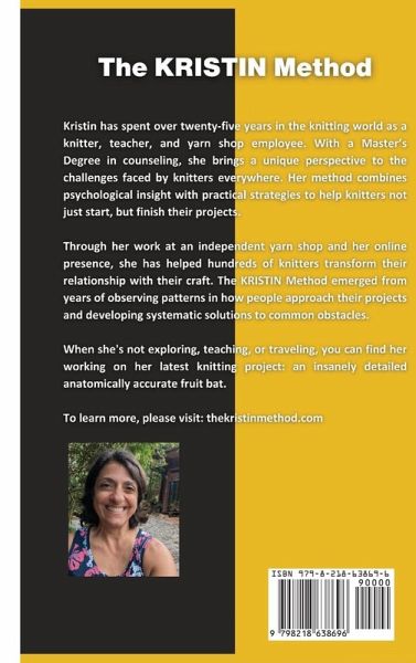 In The KRISTIN Method, -a seasoned knitter, teacher, and counselor-unpacks the real reasons why so many crafters never finish their projects. Whether it's half-knit sweaters, buried shawls, or bags full of untouched yarn, this revolutionary book is your invitation to break the cycle of guilt and finally become someone who finishes. With a warm, honest, and humorous voice, Kristin shares her personal journey through the unfinished wilderness, offering a proven, psychology-backed framework designed specifically for knitters. This isn't about hustle or discipline-it's about mindset, structure, and reclaiming your creative joy. Inside, you'll discover:The KRISTIN Method-a step-by-step guide to finishing any project Why your brain resists completion-and how to gently overcome it The magic of 20 minutes a day and how to make knitting a habit The One-Project Rule (and what to do if you need variety) How to release guilt, build momentum, and find your knitting community Whether you're a lifelong yarn-lover or just starting out, The KRISTIN Method is your roadmap to finishing with pride-and falling in love with your craft all over again. ¿¿¿¿ Stop starting. Start finishing. Your completed projects-and your confidence-are waiting.