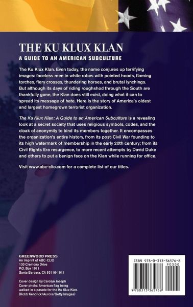 This history of the Ku Klux Klan traces the evolution of the organization from its 1865 founding to the present, drawing extensively on contemporaneous media reports. The Ku Klux Klan tells the story of America's oldest and largest homegrown terrorist organization. It is a revealing look at the philosophies and methods of a secret society that used religious symbols, secret codes, and the cloak of anonymity to bind its members together in the cause of violent racial warfare. The Ku Klux Klan encompasses the organization's entire history, from its post-Civil War founding by Nathan Bedford Forrest, to its high watermark in the early 20th century, with membership swelling to four million and its founders portrayed as heroes in the film, Birth of a Nation to its resurgence in the Civil Rights era, to more recent attempts by David Duke and others to put a benign face on the Klan in order to gain elective office.