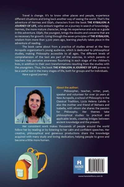 Travel is change. It¿s to know other places and people, experience different situations and bring back another way of seeing the world. That¿s the adventure of Hermes and Elijah, characters from the book THE KYBALION: A JOURNEY OF LIFE, who embark together on a journey in search of knowledge. Hermes, the more mature character, brings his experience and acts as a guide in this adventure. Elijah, the youngest, brings the doubts and concerns that are so necessary for growth. Going through the seven principles of THE KYBALION, wisdom from more than 3,500 years ago, learning playfully takes place in the adventure of reading. The book came about from a practice of studies aimed at the New Acropolis organization's young audience, which is dedicated to philosophical studies, making Philosophy accessible to all ages. The different levels of comprehension of the text are part of the exercise, in which parents or teachers may perceive awareness flourishing in each stage of the children's lives, in addition to their own transformations resulting from the studies with the youngsters. Thus, the book THE KYBALION: A JOURNEY OF LIFE proves to be a useful tool in the many stages of life, both for groups and for individuals. Have a good journey!