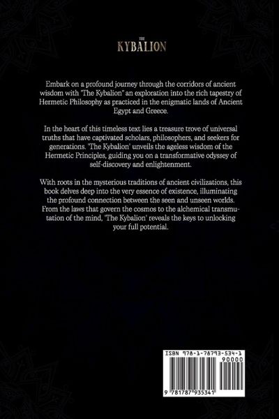 Embark on a profound journey through the corridors of ancient wisdom with 'The Kybalion" an exploration into the rich tapestry of Hermetic Philosophy as practiced in the enigmatic lands of Ancient Egypt and Greece. In the heart of this timeless text lies a treasure trove of universal truths that have captivated scholars, philosophers, and seekers for generations. 'The Kybalion' unveils the ageless wisdom of the Hermetic Principles, guiding you on a transformative odyssey of self-discovery and enlightenment. With roots in the mysterious traditions of ancient civilizations, this book delves deep into the very essence of existence, illuminating the profound connection between the seen and unseen worlds. From the laws that govern the cosmos to the alchemical transmutation of the mind, 'The Kybalion' reveals the keys to unlocking your full potential. Hermetic Wisdom Unveiled: Explore the hidden teachings of Ancient Egypt and Greece, offering a unique perspective on the universe and the self. Universal Principles: Discover the seven Hermetic Principles that underlie reality itself, providing profound insights into the nature of creation. Practical Alchemy: Learn how to apply these ancient principles to your daily life, transforming your thoughts and desires into tangible manifestations. A Spiritual Voyage: Join the ranks of those who have been profoundly influenced by 'The Kybalion' and embark on a spiritual journey that transcends time and space. Prepare to embark on an intellectual and spiritual adventure that has stood the test of time. 'The Kybalion' beckons you to uncover the secrets of Hermetic Philosophy and embrace the profound truths that have shaped the world's most enduring spiritual traditions.