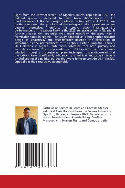 Right from the commencement of Nigeria's Fourth Republic in 1999, the political system is depicted to have been characterized by the predominance of the two major political parties- APC and PDP. These parties alternated the positions of the ruling and the opposition parties between themselves. Therefore, this research paper investigates the performances of the Labour Party in the 2023 general election in Nigeria. It further assesses the strategies that could transform the party into a formidable force in Nigeria. The study adopted an ethnographic research design to analytically and systematically describe the perception of individuals on the performances of the Labour Party during the February 2023 election in Nigeria. Data were collected from both primary and secondary sources. The study made use of 25 key informants who were selected through a purposive sampling technique. It was discovered that the Labour Party significantly influenced the political landscape in Nigeria by challenging the political parties that were hitherto considered invincible, especially in their respective strongholds.