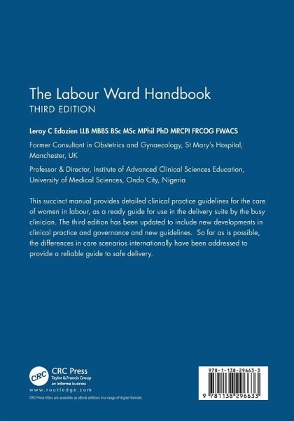 This succinct manual provides detailed clinical practice guidelines for the care of women in labour, this is designed to be a ready guide for use in the delivery suite by the busy clinician. The third edition has been updated to include new developments in clinical practice and governance and new guidelines. So far as is possible, the differences in care scenarios internationally have been addressed to provide a reliable guide to safe delivery.