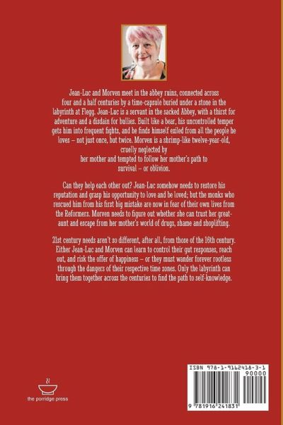Jean-Luc and Morven meet in the abbey ruins, connected across four and a half centuries by a time-capsule buried under a stone in the labyrinth at Flegg. Jean-Luc is a servant in the sacked Abbey, with a thirst for adventure and a disdain for bullies. Built like a bear, his uncontrolled temper gets him into frequent fights, and he finds himself exiled from all the people he loves - not just once, but twice. Morven is a shrimp-like twelve-year-old, cruelly neglected by her mother and tempted to follow her mother's path to survival - or oblivion. Can they help each other out? Jean-Luc somehow needs to restore his reputation and grasp his opportunity to love and be loved; but the monks who rescued him from his first big mistake are now in fear of their own lives from the Reformers. Morven needs to figure out whether she can trust her great-aunt and escape from her mother's world of drugs, shame and shoplifting. 21st century needs aren't so different, after all, from those of the 16th century. Either Jean-Luc and Morven can learn to control their gut responses, reach out, and risk the offer of happiness - or they must wander forever rootless through the dangers of their respective time zones. Only the labyrinth can bring them together across the centuries to find the path to self-knowledge.