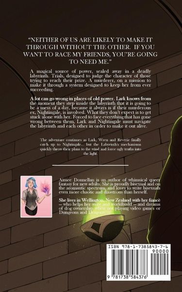 "Neither of us are likely to make it through without the other. If you want to race my friends, you're going to need me." A magical source of power, sealed away in a deadly labyrinth. Trials, designed to judge the character of those trying to reach their prize. A murderer, on a mission to make it through a system designed to keep her from ever succeeding. A lot can go wrong in places of old power. Lark knows from the moment they step inside the labyrinth that it is going to be a mess of a day, because it always is if their murderous ex, Nightingale, is involved. What they don't expect is to get stuck alone with her. Forced to face everything that has gone wrong between them, Lark and Nightingale must navigate the labyrinth and each other in order to make it out alive.