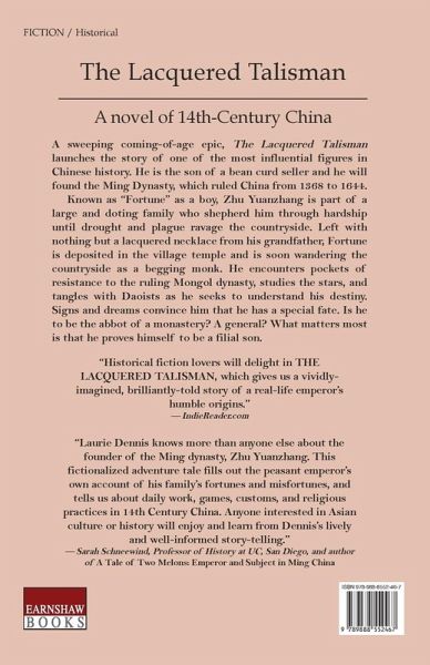 A sweeping coming-of-age epic, The Lacquered Talisman launches the story of one of the most influential figures in Chinese history. He is the son of a bean curd seller and he will found the Ming Dynasty, which ruled China from 1368 to 1644. Known as "Fortune" as a boy, Zhu Yuanzhang is part of a large and doting family who shepherd him through hardship until drought and plague ravage the countryside. Left with nothing but a lacquered necklace from his grandfather, Fortune is deposited in the village temple and is soon wandering the countryside as a begging monk. He encounters pockets of resistance to the ruling Mongol dynasty, studies the stars, and tangles with Daoists as he seeks to understand his destiny. Signs and dreams convince him that he has a special fate. Is he to be the abbot of a monastery? A general? What matters most is that he proves himself to be a filial son.