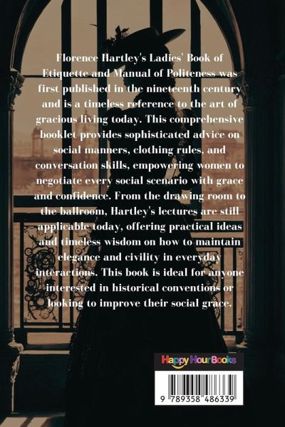 Florence Hartley's Ladies' Book of Etiquette and Manual of Politeness was first published in the nineteenth century and is a timeless reference to the art of gracious living today. This comprehensive booklet provides sophisticated advice on social manners, clothing rules, and conversation skills, empowering women to negotiate every social scenario with grace and confidence. From the drawing room to the ballroom, Hartley's lectures are still applicable today, offering practical ideas and timeless wisdom on how to maintain elegance and civility in everyday interactions. This book is ideal for anyone interested in historical conventions or looking to improve their social grace.