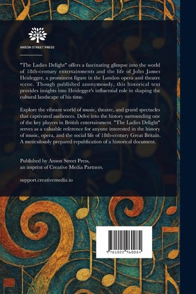 "The Ladies Delight" offers a fascinating glimpse into the world of 18th-century entertainments and the life of John James Heidegger, a prominent figure in the London opera and theatre scene. Though published anonymously, this historical text provides insights into Heidegger's influential role in shaping the cultural landscape of his time. Explore the vibrant world of music, theatre, and grand spectacles that captivated audiences. Delve into the history surrounding one of the key players in British entertainment. "The Ladies Delight" serves as a valuable reference for anyone interested in the history of music, opera, and the social life of 18th-century Great Britain. A meticulously prepared republication of a historical document. This work has been selected by scholars as being culturally important, and is part of the knowledge base of civilization as we know it. This work is in the public domain in the United States of America, and possibly other nations. Within the United States, you may freely copy and distribute this work, as no entity (individual or corporate) has a copyright on the body of the work. Scholars believe, and we concur, that this work is important enough to be preserved, reproduced, and made generally available to the public. We appreciate your support of the preservation process, and thank you for being an important part of keeping this knowledge alive and relevant.