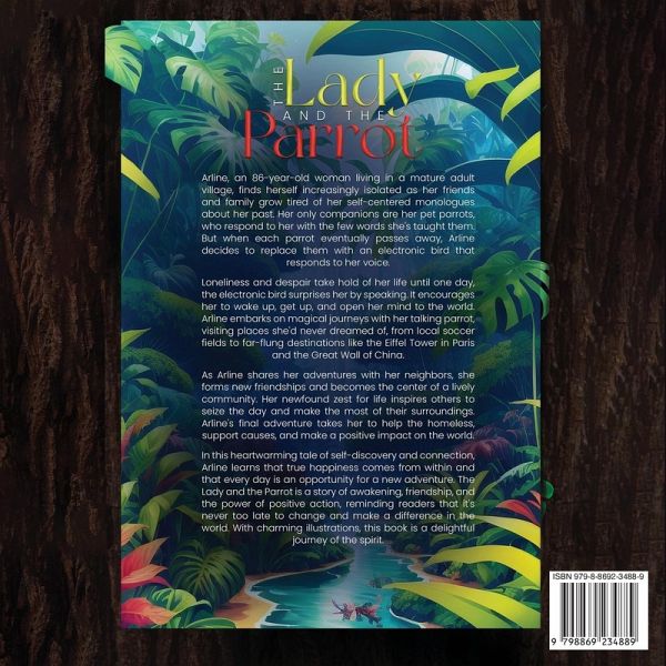 Arline, an 86-year-old woman living in a mature adult village, finds herself increasingly isolated as her friends and family grow tired of her self-centered monologues about her past. Her only companions are her pet parrots, who respond to her with the few words she's taught them. But when each parrot eventually passes away, Arline decides to replace them with an electronic bird that responds to her voice. Loneliness and despair take hold of her life until one day, the electronic bird surprises her by speaking. It encourages her to wake up, get up, and open her mind to the world. Arline embarks on magical journeys with her talking parrot, visiting places she'd never dreamed of, from local soccer fields to far-flung destinations like the Eiffel Tower in Paris and the Great Wall of China. As Arline shares her adventures with her neighbors, she forms new friendships and becomes the center of a lively community. Her newfound zest for life inspires others to seize the day and make the most of their surroundings. Arline's final adventure takes her to help the homeless, support causes, and make a positive impact on the world In this heartwarming tale of self-discovery and connection, Arline learns that true happiness comes from within and that every day is an opportunity for a new adventure. The Lady and the Parrot is a story of awakening, friendship, and the power of positive action, reminding readers that it's never too late to change and make a difference in the world. With charming illustrations, this book is a delightful journey of the spirit.