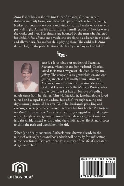 Anna Fisher lives in the exciting City of Atlanta, Georgia, where darkness not only brings out those who prey on others but the young, fearless, adventurous residents and visitors from all walks of society who party all night. Anna's life exists in a very small section of the city where she works and lives. Her dreams are haunted by the man who fathered her child. A few afternoons a week, she sits alone on a bench in the park and allows herself to see her child playing there. The child calls Anna the sad lady in the park. To Anna, the little girl is "my stolen child."